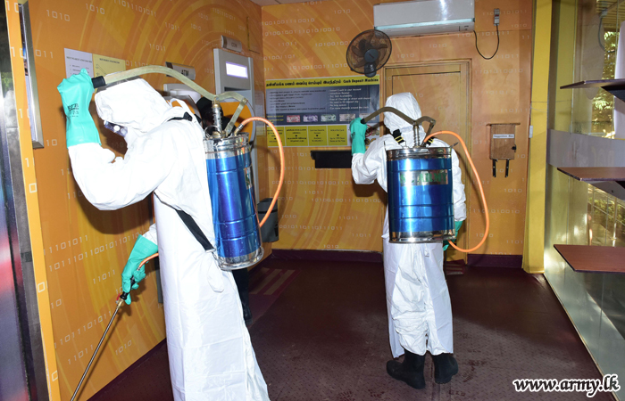 A group of specially-trained troops of the 9 Sri Lanka Engineers (SLE) under command to the Security Force Headquarters - Mullaittivu disinfected the general areas from Mullaittivu to Mulliavalai on Friday (17) for the betterment of the general public.