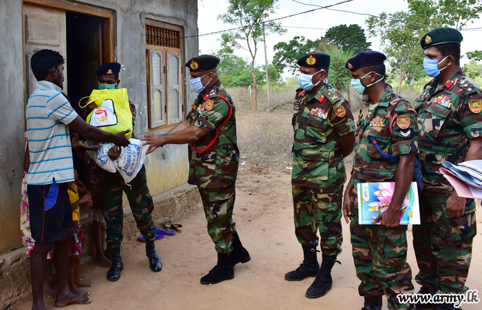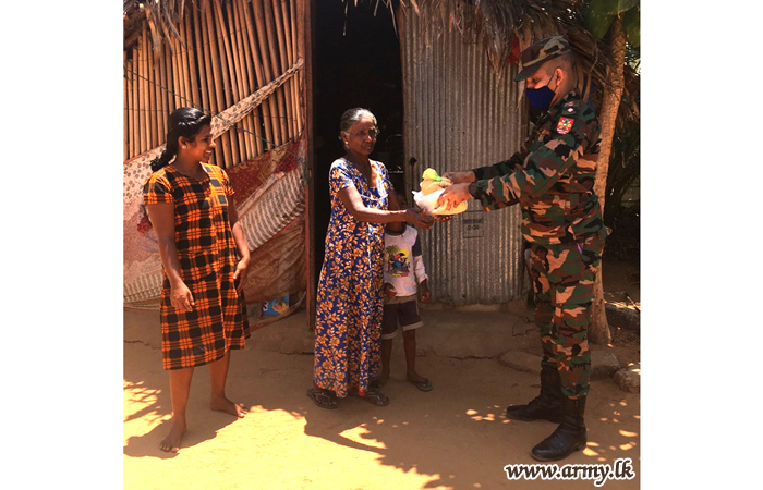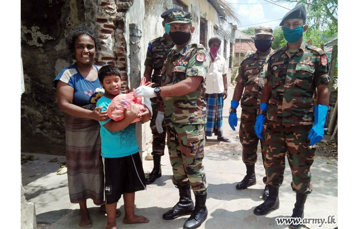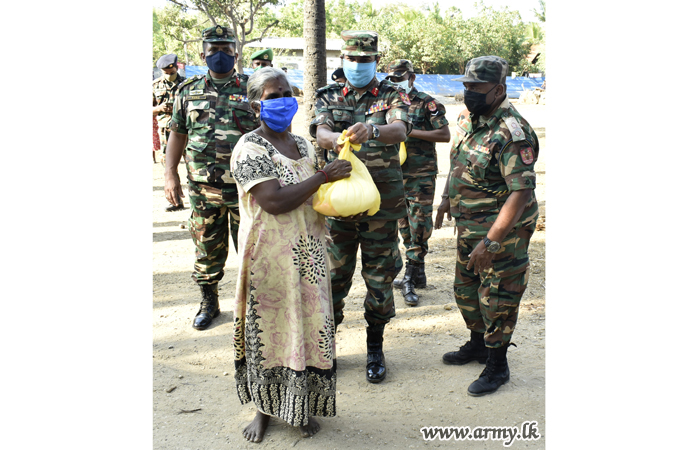 515 Brigade troops of the 51 Division considering hardships of the poor people in the area under their purview using their own money distributed more than 30 dry ration packs among the most deserving in Sandilipay and Tellippalai areas on Saturday (11).