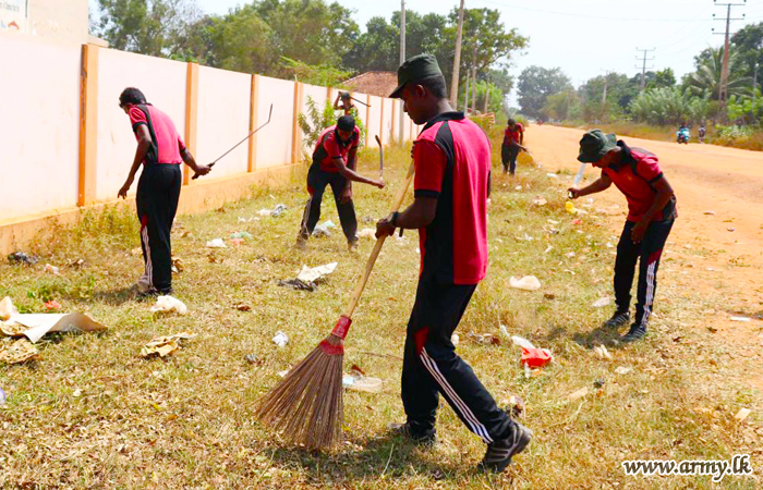 Troops of the 574 Brigade and the 9 Vijayabahu Infantry Regiment at the request of the school carried out a Shramadana drive at Bharathipuram School - Kilinochchi on Wednesday (4).