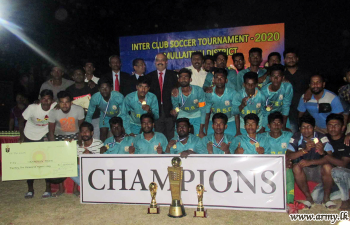 Finals in the Interclub Soccer Tournament organized by the 68 Division of the Security Force Headquarters - Mullaittivu (SFHQ-MLT) as one of their community-oriented projects, meant to promote gestures of...