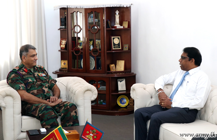 The newly-appointed District Secretary for Jaffna, Mr Kanapathipillai Maheshan on Tuesday (18) paid a courtesy call on the Commander, Security Forces - Jaffna, Major General Ruwan Wanigasooriya at his office at the Security Force HQ - Jaffna (SFHQ-J).