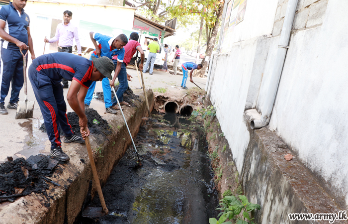 Troops of the Security Force HQ - West (SFHQ-West) and 10 Sri Lanka National Guard troops at the request of the Principal at Homagama Subharathi Mahamathya College in Godagama carried out a thorough cleaning of the drain system around the school premises...