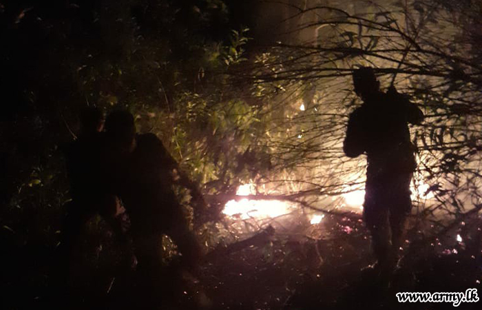 Alert to a sudden outbreak of a fire in the general boggy area from Muthurajawela to Pubudugama during morning hours on Monday (10), 5 Officers and 30 Other Ranks of 1 Sri Lanka Armoured Corps and 8 Sri Lanka Light Infantry of the 141 Brigade, together with the 141 Brigade Commander rushed to the area and brought the fast spreading bush fires under control.