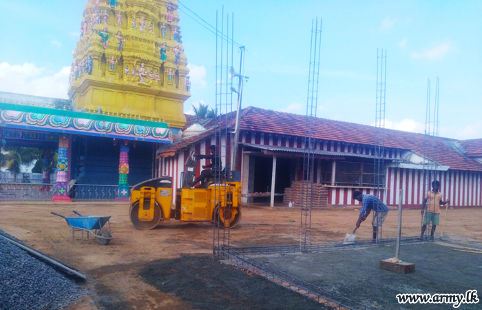 9 Sri Lanka Engineer troops of the 571 Brigade in Kilinochchi considering the need for better facilities for Hindu devotees attending offerings, ‘Pooja’ at Kandasamy Kovil in Kilinochchi constructed a pedestrian track around the temple premises in...