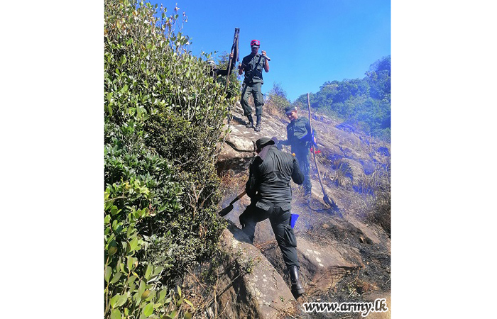 2 (V) Sri Lanka Sinha Regiment (SLSR) troops of the 111 Brigade HQ of 11 Division under the Security Force Headquarters - Central (SFHQ-Cen) on Monday (10) hurried to the Hantana mountain peak in the Uduwela Divisional Secretariat and extinguished a bushfire...