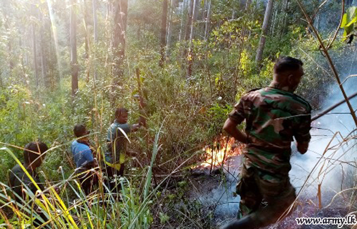 Troops of the 112 Brigade under command to the 11 Division of the Security Force HQ - Central on Sunday (9) quickly responded to the occasion and brought a wildfire that was spreading under control in the general area of Madhuwelpathana, Bidunuwewa...