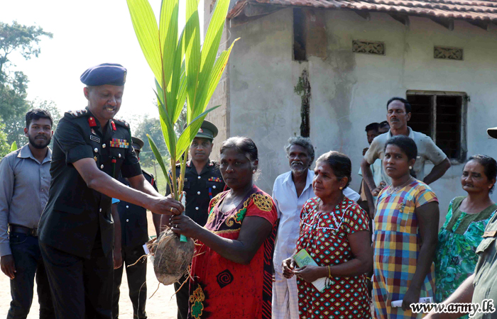 More than 200 coconut saplings, donated by the National Coconut Development Authority were distributed among civilians in the general areas of Puthukuduiruppu, Varnavil on Saturday (8) to coincide with the Army Headquarters-initiated...