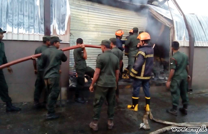 Alert to a sudden outbreak of a fire in the coconut oil-producing 'Randeniya Virgin Mills' factory in Batepola, Gampaha area on Sunday (9), 141 Brigade troops, together with fire fighters in Gampaha rushed to the scene and brought it under control.