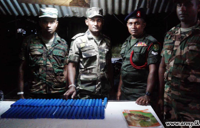 Army troops manning a roadblock at Neriyakulam along Vavuniya - Mannar road last evening (17) during a search, conducted on a Mannar bound private bus detected 51 gelignite sticks, weighing about 6.8 kg. 5 (Volunteer) Sri Lanka Light Infantry...
