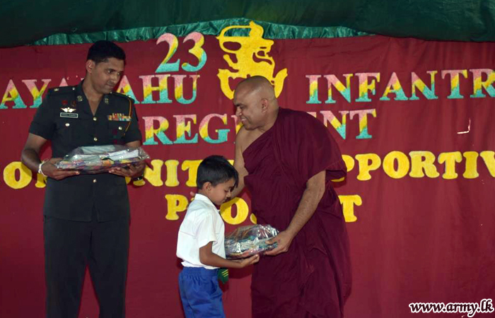 Wanni Troops-Organized Mega Donations Benefit More than 1500 Students in Welioya & Veheratenna