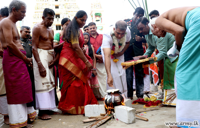 Joining hands with the civil community in Point Pedro, Jaffna troops supported the conduct of a special Thai Pongal ceremony at Alwai Sri Vallipuram Swamy Kovil on Wednesday (15) on account of the annual Thai Pongal day.