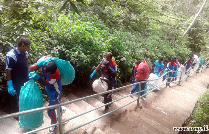 122 Brigade troops-based in Kataragama conducted a Shramadana campaign in the sacred Wedasitikanda at Kataragama on Wednesday (15) on the direction given by Major General S.A Thilakararathne, General Officer Commanding 12 Division HQ at Hambantota.