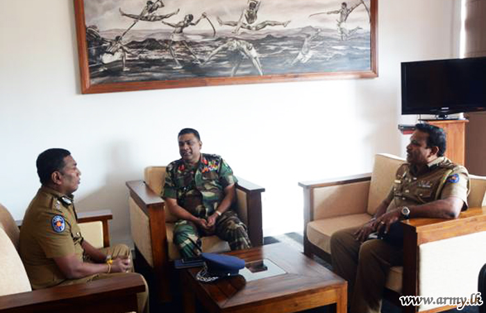Deputy Inspector General of Police in Vavuniya Division Mr P.K Dhammika Priyantha paid a courtesy call on the Commander, Security Forces - Wanni, Major General Rohitha Dharmasiri on Monday (6) after taking over duties as the new Deputy Inspector General of the Vavuniya Division.