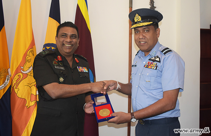The Base Commander of the Sri Lanka Air Force Camp - Vavuniya, Air Commodore L.H Sumanaweera and the Commanding Officer Naval Base - Poonewa, Captain R.P.C.R Fonseka paid a courtesy call on the Commander, Security Forces - Wanni, Major General Rohitha Dharmasiri on Friday (10).