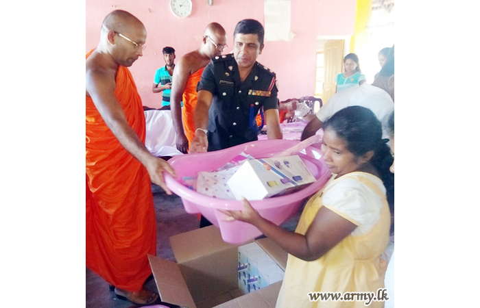 Hambantota-based 122 Brigade troops of the 12 Division of the Security Force Headquarters - Central with sponsorship provided by Udahamulla Sri Jinarathanarama temple, headed by Ven Kalavinne Dhammarakkitha Nayake Thero gave away packs of nutrients to 53 pregnant women and invoke blessings on them during a religious ceremony that got underway at Mattala Sri Wajirarama Maha Viharaya in Hambantota on Monday (30).