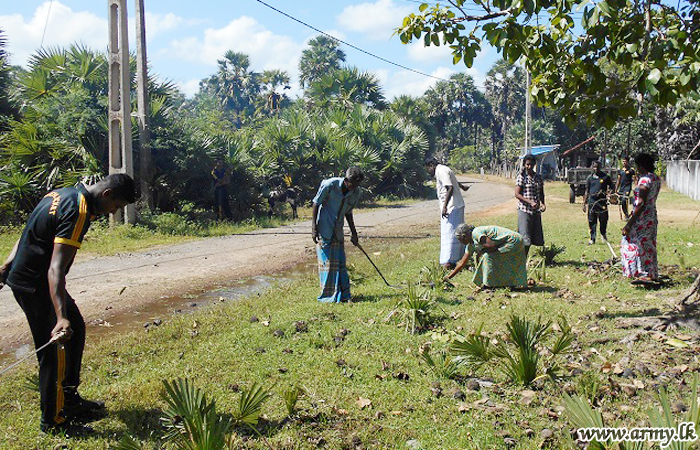 Troops of 1 Sri Lanka Sinha Regiment (SLSR) of the 573 Brigade under the 57 Division on the directions of General Officer Commanding, 57 Division, Major General Pradeep de Silva and under the supervision of the Commander 573 Brigade carried out a cleaning project in the Kandawalai Hospital premises.