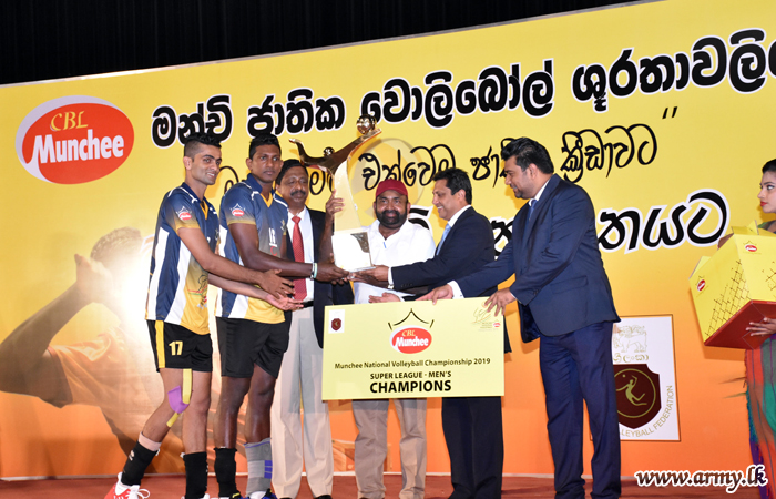 Sri Lanka Army this evening making record after a decade won the ‘Munchee National Volleyball Championship 2019’ during the finals played at Youth Service Council....