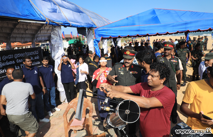 Security Forces - Mullaittivu (SF-MLT) Thursday (26) morning facilitated interested sections in the civil society to view the rare annular solar eclipse as the Sun undergoes the maximum eclipse in Mullaittivu area by putting up an observation point for sky-watchers.