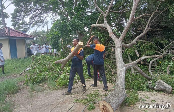 Troops of 12 Infantry Division Removed a Tree at Kudabolana Panchaseeha School