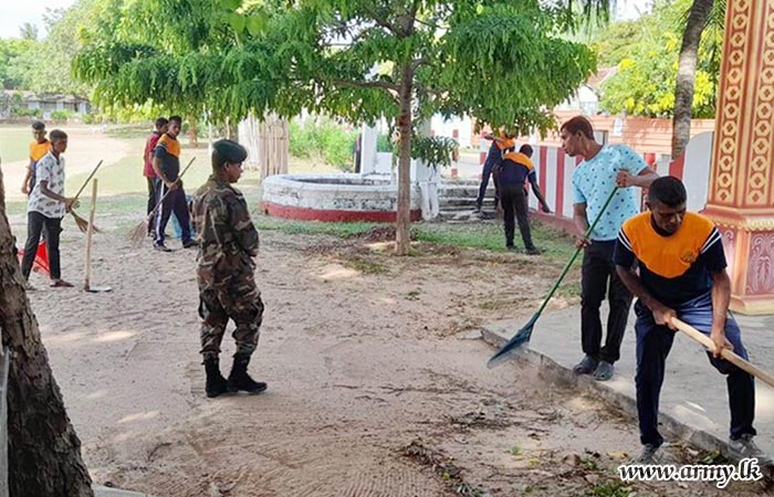 Troops of 4 Sri Lanka Sinha Regiment (4 SLSR) conducted a cleaning program at Bhadrakali Amman Kovil, Nellandai in Thumpalei on 13 June 2024.