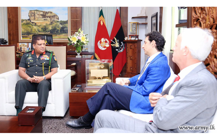 Two representatives of the International Committee of Red Cross (ICRC) Wednesday (23) evening paid a courtesy call on the Commander of the Army, Lieutenant General Shavendra Silva at the Army Headquarters.