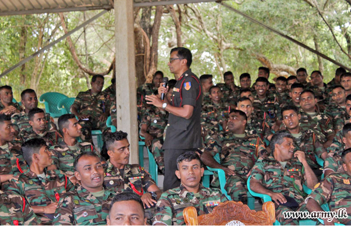 Troops under training at the Battalion Training School in Arasapurakulam of 66 Division of the Security Force Headquarters - Kilinochchi were recently enlightened on ‘Suicide Prevention and Problem-Solving' in a psychological programme’ organized by the Army Directorate of Preventive Medicine and Mental Health at the Colombo Army Hospital, together with members of the Directorate of Psychological Operations.