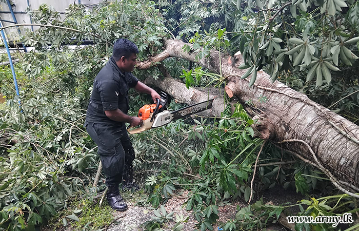 Troops of 142 Infantry Brigade Clear Fallen Trees and Provide Relief in Egodagama and Puwakpitiya