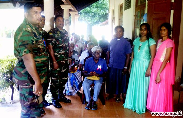 Inmates at the Shakthi Elders’ Home in Kaithady, Jaffna enjoyed the hospitality of 523 Brigade troops under the 52 Division on account of the World Elders' Day 2019 on Tuesday (1).
