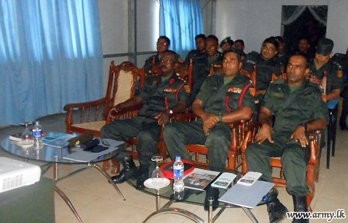 66 Infantry Division troops on Tuesday (24) watched a presentation on ‘Global Expansion of ISIS and Its Impact on Sri Lanka’, conducted by the Commanding Officer of the 20 Sri Lanka Light Infantry (SLLI) Unit and his team at the SLLI Headquarters.