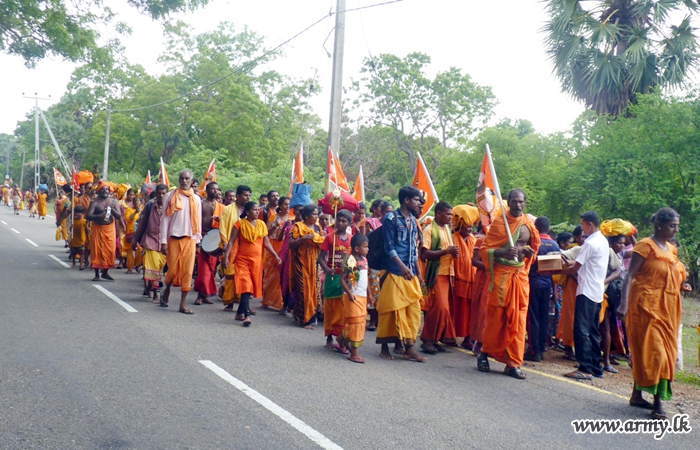 233 Brigade troops of the 23 Division of the Security Force Headquarters - East (SFHQ-E) with the intention of fostering religious harmony and relations with the civil community provided refreshments and drinking water bottles to the devotees on ‘Paada Yathra’ (foot pilgrimage) to the Verugal Kovil in Trincomalee on Thursday (19).