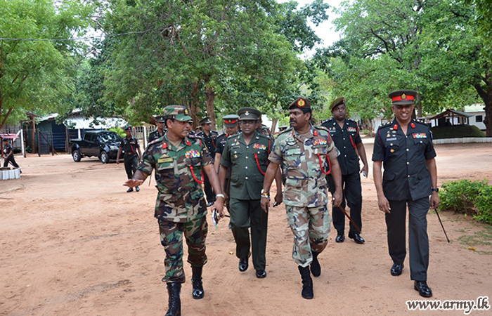 64 Division Headquarters at Oddusudan under the Security Force Headquarters - Mullaittivu (SFHQ-MLT) greeted the new Commander, SFHQ-MLT, Major General Jayantha Senevirathne when he made his first formal visit to the camp on Friday (20).