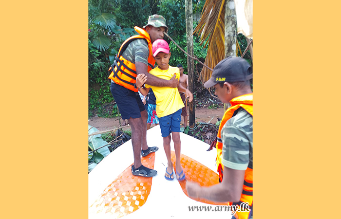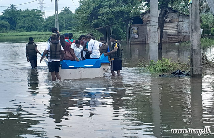 Troops of the 61 Infantry Division conducted a rescue mission to aid flood victims in the Matara District, specifically in Kadduwa, Wellathota, and Dolegoda Regional Secretariat Divisions on 03 June 2024.