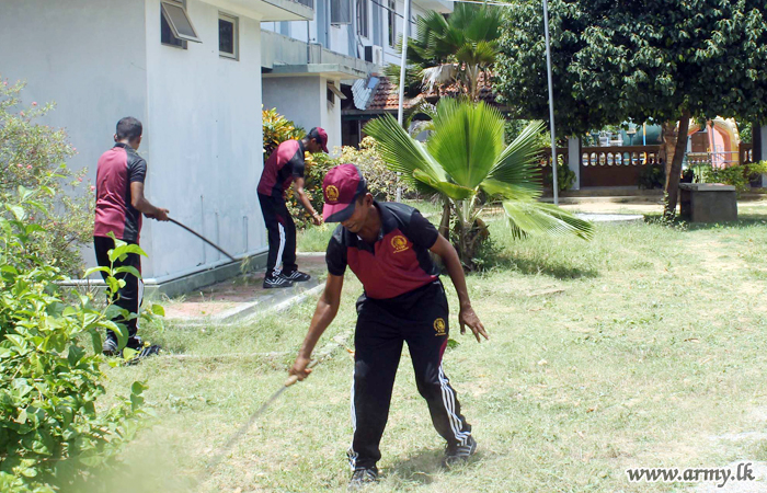 Troops of the 4 Vijayabahu Infantry Regiment (VIR) in the 523 Brigade of the 52 Division under the Security Force Headquarters - Jaffna (SFHQ-J) on Saturday (7) took part in a community project to clean the Chavakachcheri Base Hospital precincts at the request of medical authorities.