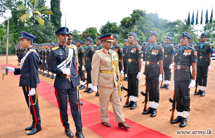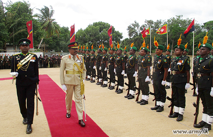 Troops of the 62 Division in a splendid felicitation ceremony rich with military formalities welcomed their newly-promoted General Officer Commanding Major General Dhammika Jayasinghe when he arrived there on Tuesday (3).
