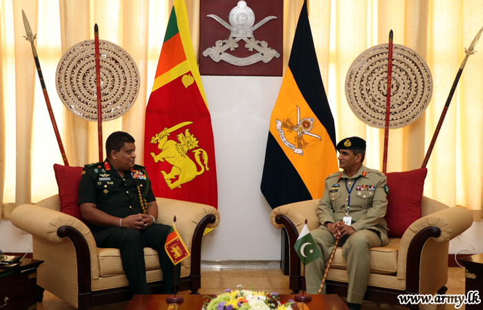 Major General Shahid Nazir of the Pakistan Army on the sidelines of the ‘Colombo Defence Seminar’ sessions paid a courtesy call on the Commander of the Army, Lieutenant General Shavendra Silva at the BMICH VIP suite on Friday (30).