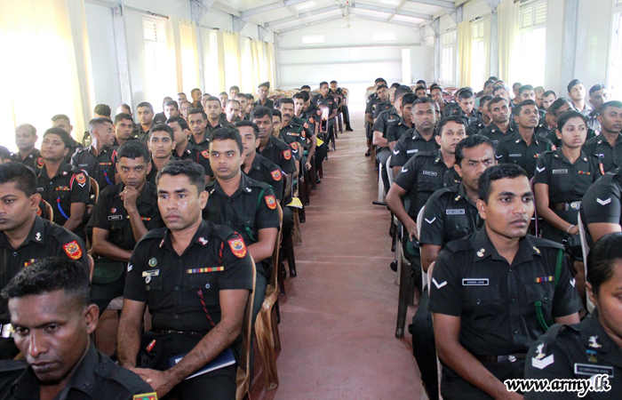 11 Officers and 125 troops of under command establishments of the 11 Division of the Security Force Headquarters - Central at the 11 Division Headquarters in Kundasale listened to a lecture on 'Powers, related to dispersing of unlawful assemblies, Right to Self Defence and Powers available to the Armed Forces' on Wednesday (28).