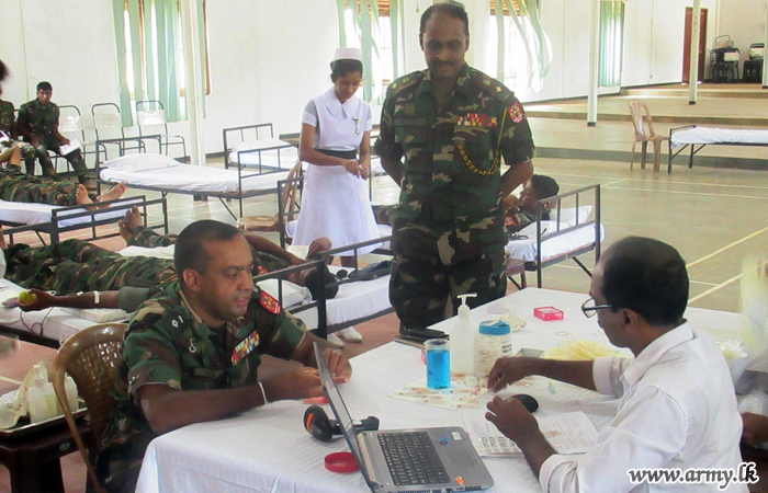 To coincide with the 24th anniversary celebration of the 52 Division of the Security Force Headquarters-Jaffna, troops serving all formations under the 52 Division donated their blood on Thursday (15) under the guidance of Brigadier Sena Waduge, General Officer Commanding 52 Division.