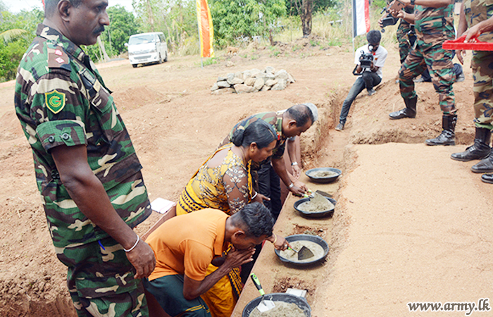 The foundation stone for construction of the 12th new house for a needy family living in Samadhigama, Seeppukulama, one of the rural interiors of Kahatagasdigiliya under the ongoing Corporate Social Responsibility Project of the Security Force Headquarters...