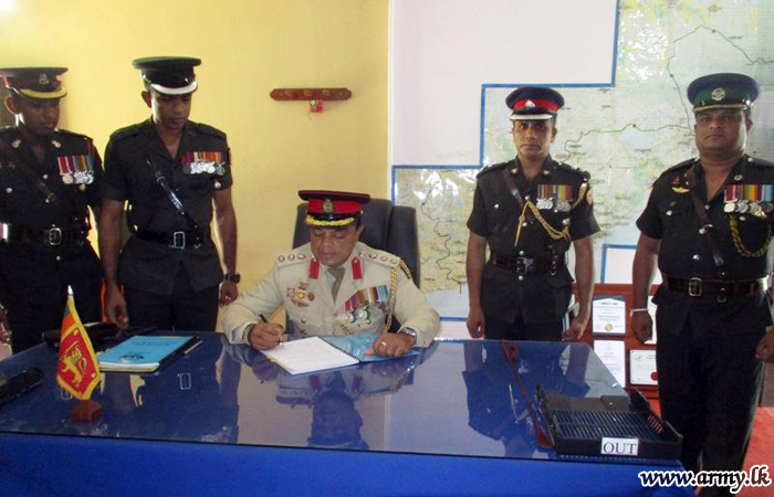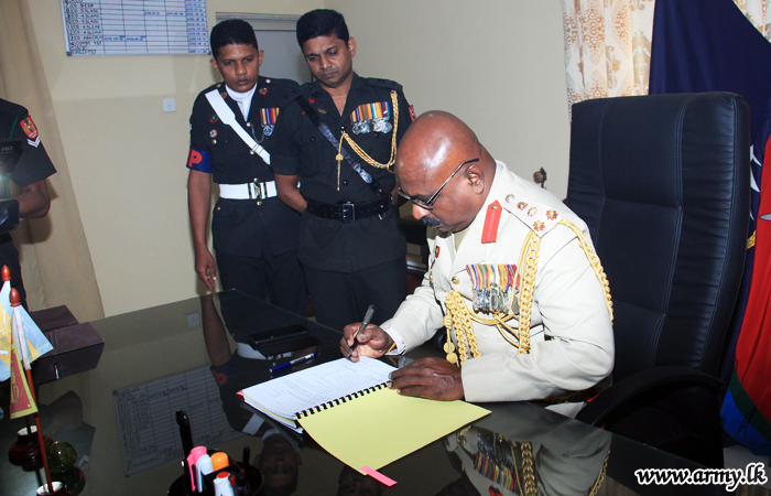 Colonel Commandant of Sri Lanka Corps of Military Police (SLCMP) and Commander Logistics Command Major General D.K.G.D Sirisena on the invitation of Lieutenant Colonel M.M.W Rupasinghe, Commanding Officer of the 6 SLCMP visited the 6 SLCMP Headquarters on Thursday (15) in Mullaittivu.
