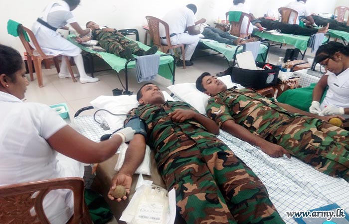 60 Army personnel including 6 Officers volunteered to offer their blood to patients in Kilinochchi Hospital on Thursday (01) when the Bank of Ceylon Kilinochchi branch held a blood donation to mark its anniversary.
