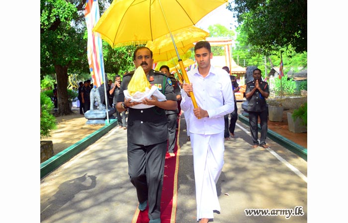 A religious ceremony to enshrine sacred relics in the hemispherical dome of the newly-erected Pagoda (Stupa) in the temple premises of the Security Force Headquarters - East was held on Thursday (01).