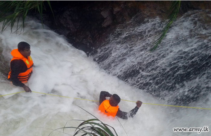 Ten soldiers of the 3 (Volunteer ) Sri Lanka Sinha Regiment (SLSR ) and one Officer assisted the recovery of a dead body of a little girl who was carried away in the gushing waters in Agarapathana...