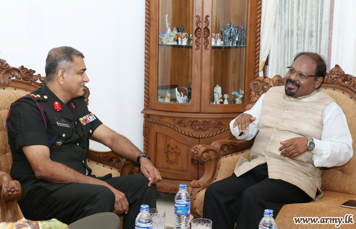 Major General Ruwan Wanigasooriya, the newly-appointed Commander, Security Forces-Jaffna paid a courtesy call on the Consul General of India, resident in Jaffna on Thursday (18).