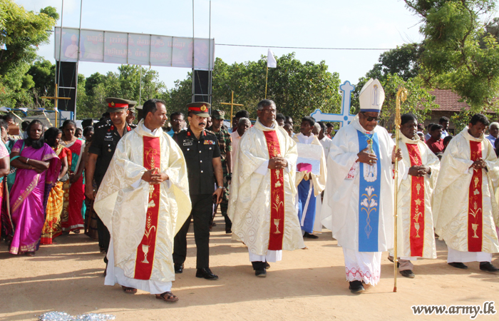 New Church of Our Lady of Perpetual Help Consecrated Major General Vijitha Ravipriya, Commander, Security Forces - Kilinochchi, Brigadier A.S Hewawitharana the General Officer Commanding, 57 Division, Commander, 571 Brigade, General Staff Officer 1 (Coord), Security Force Headquarters - Kilinochchi (SFHQ-KLN), Commanding Officer, 7 Sri Lanka Light Infantry (SLLI) were among invitees to the inaugural consecration of the newly-erected Church of Our Lady of Perpetual Help (Sadasagaya Annie Church) at Ambalnagar.