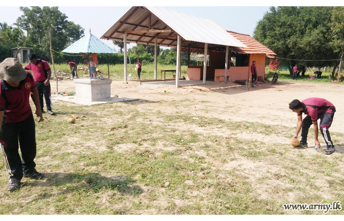 Troops of the 9 Vijayabahu Infantry Regiment (VIR) of the 571 Brigade organized a Shramadana campaign on Saturday (6) to clean the Durgai Amman Kovil and its premises in Barathipuram under the guidance of Brigadier A.S Hewawitharana, General Officer Commanding, 57 Division and under the supervision of the 571 Brigade Commander.