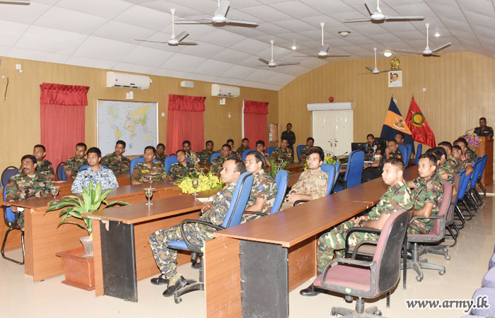 The Officers following the Junior Command Course on Counter Insurgency Jungle Warfare (JCC-CIJW) No-25 at Maduruoya Army Training School as part of their familiarization programme visited the Security Force Headquarters - Kilinochchi and its suburbs during 8 - 9 July.