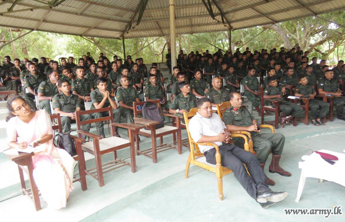 Following instructions given by Brigadier M.D Wijesundara, General Officer Commanding, 66 Infantry Division, a special awareness programme, designed to educate the troops on 'Forest Conservation' was conducted recently at the Battalion Training School - Arasapurakulam.