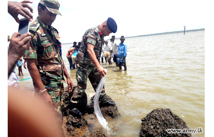 In co-operation with National Aquaculture Development Authority (NAQDA), 7 Sri Lanka National Guard (SLNG) troops with the intention of promoting nutritional factor and income-generating openings of poor villagers released thousands of fish fingerlings to the Akkarayankulam Tank...