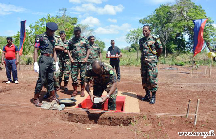 During a simple ceremony held on Sunday (23), the foundation stone for construction of a new house for a needy family in Veherawewa, Budhdhangala in Padhavi Parakramapura was auspiciously laid by Colonel General Staff of the Security Force Headquarters - Wanni...
