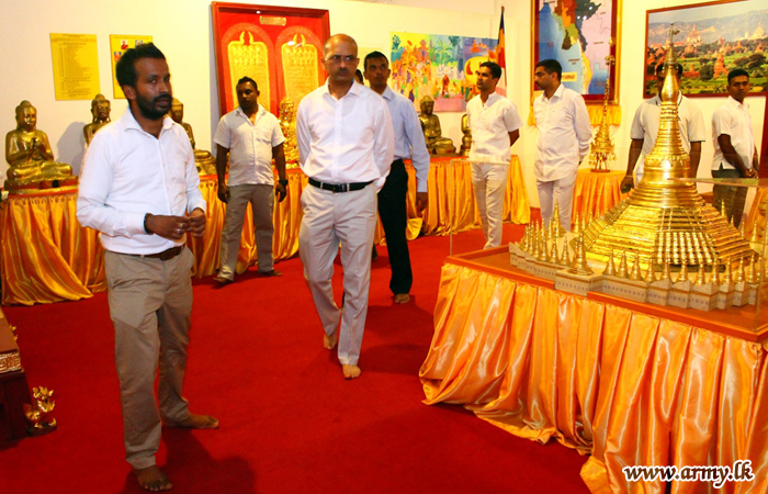 Major General Suchindra Kumar, Head of the Indian Army delegation who attended the recent Army to Army Staff Talks (AAST) sessions paid his homage to the sacred Sri Dalada Mailigawa (Temple of Tooth), together with his retinue on Wednesday (12).